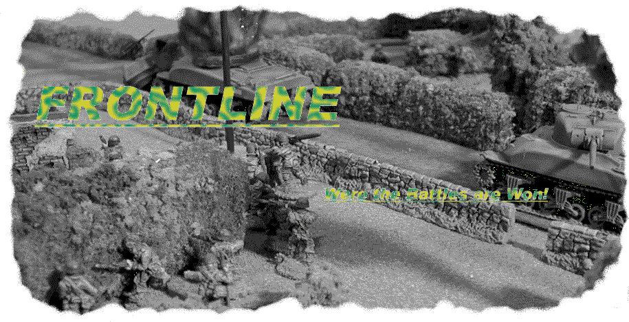 FRONTLINE tm is a soon to be released set of rules and guidelines for simulating World War II combat on a squad / platoon level using miniature soldiers and vehicles. The game concentrates on SMALL unit actions at the "sharp end of the stick" so to speak... were the battles are won!