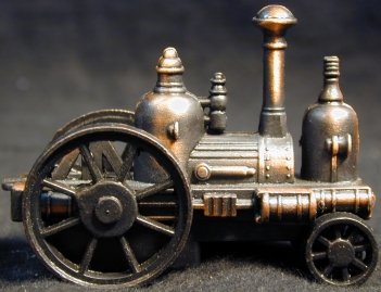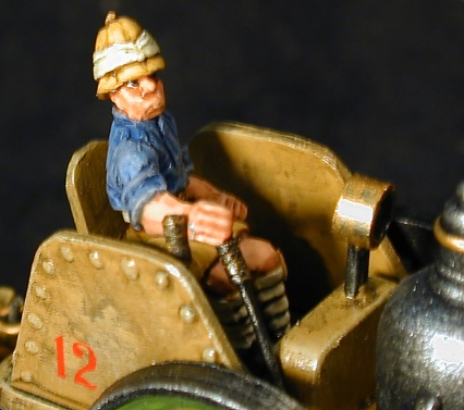 I extended the stack so that a piece of removable smoke could be used first. I then ground of some metal struts that would be in the way of my "operators" compartment I was going to build in the back. I did quite a bit of filing and trimming since the molding of the original was not that great. Once I finished that I built the rear compartment including seat, armored sides, control panel with "big brass gauge", control levers, and a rear hitch to haul guns or trailers.