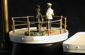 This project seemed to flow from my brain and I raced to get it finished for the upcoming HMGS/PSW con. Here are some pictures of the completed project. There are some great details that people notice after their 3 or forth inspection of the ship. I hand drew all the lettering and designs on it then created decals with and ALPS thermal wax printer.