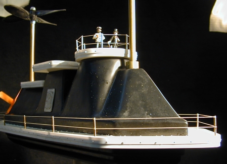 As you can see in this picture of the first build stage the only 3 pieces of the original kit I used are the black vacuform body (2 piece out of sight below) and the one cast metal hatch. I built the 3 top decks and the Wraparound mid-deck out of styrene and balsa wood. Props and all else are replacement items.