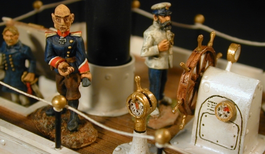 This is where the story takes a sad turn. After I laid the keel and started to build the deck and other major components I took pictures of all the major steps and planned to do a complete article on the building of the gunboat. Everything went along fine until about a week before completion. I was in the process of downloading all the pictures when one of those mysterious computer glitches trashed the disk full of pictures. All that remained were a couple of early keel pictures and those of the near completed project. So without the pictures to go with the article I have decided to just let the pictures speak for themselves. A couple of comments and that's it. I will tell you that there were points its construction that it sat on the workbench untouched for weeks while I contemplated its design or some bit of construction. It wasn't easy, but somehow I feel that came out pretty well.