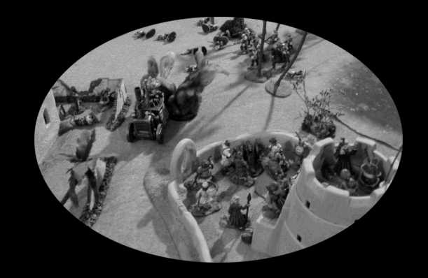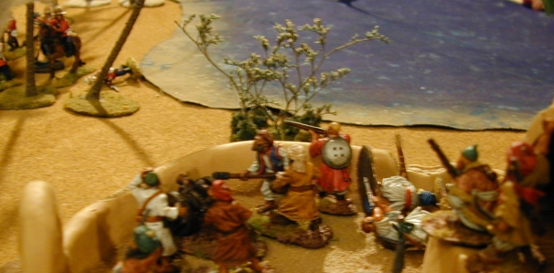 at the edge of the palm groves leading his forces. The Arab strong point is clearly visible here with their gun