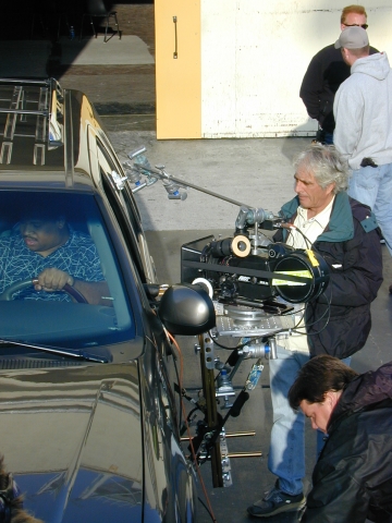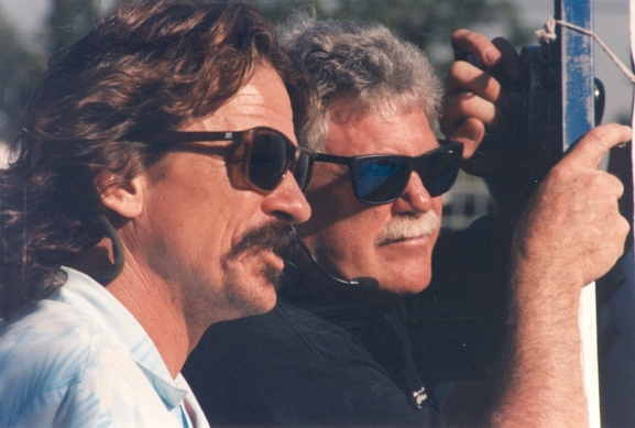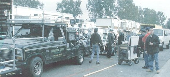 My Dolly grip for several seasons John Harmon and Rob Ruiz sit under a "Lenny" arm crane.