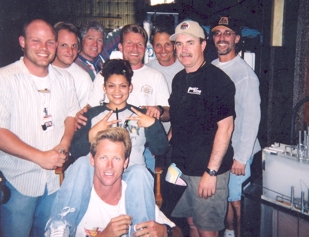 Me, my crew, and our mascot "Binky" or were we her pets? Standing left to right, Rusty Davis, Robert Nelson, Greg Guellow, Ted Lewis, Paul ?, Me, John Farmer, "Binky in the center and ? below.