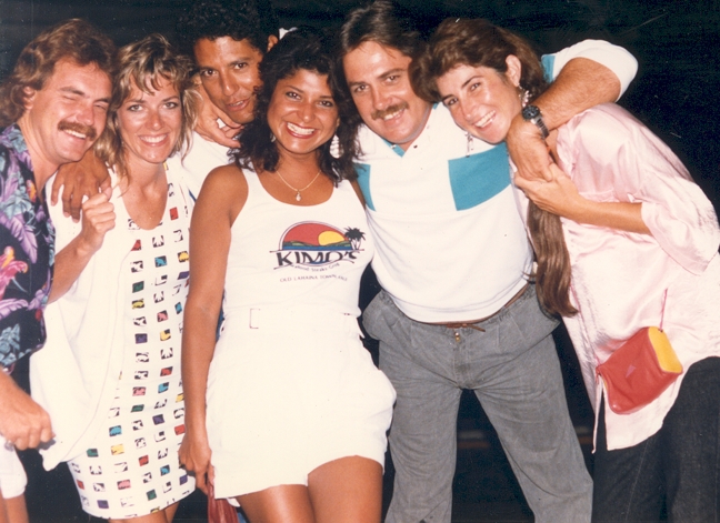 The Beautiful women in the middle is MY wife and she gets in just because! Magnum was a lot of fun on set and in the off times! Here Me, Genie, Andy Agular (BB Grip) Sylvia (my wife) Skip Burnham (1st AD) and his wife (?) our out in Waikiki sampling local beverages!