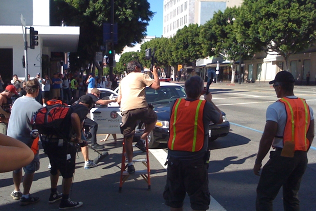Shooting in Hollywood always fun for the tourist looking at us and us at the tourist! Here we shut down Hollywood Blvd for the big bank robbery!