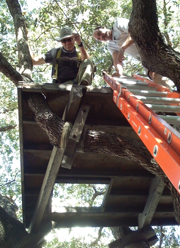 One of the things I have always like about gripping and film work is everything revolves around the "Camera" nothing is more important than it! The images it records are the very reason for a production to exist. What would your million dollar Actor be with out that camera to record the image? nothing but another flunky in a motor home.... We as Grips are the main force in moving that "eye of the hurricane" around. Whether its on a dolly, crane, insert car, strapped to the front of a speeding train or in this case up a tree! There is no end to the ingenuity used to get that camera pointed where the DP or director wants it.