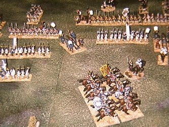 Then there are the uniforms. Miniature rules simply do not tell players how to paint their figures. Research is an absolute necessity, and like figuring out battle scenarios, can easily lead off into areas of traditional historical study. Ever wonder why Napoleonic French cavalry trumpeters wore such distinctive uniforms and rode only light grey or white horses? Take a look at French dragoons, for example. Mounted on bays or browns, with brass helmets with black, flowing horsehair manes, dark green saddle blankets trimmed white and dark green coats with lapels, collar and cuffs in a distinctive regimental color, yellow perhaps. Now look at the trumpeter – white horsehair main, yellow saddle blanket, yellow coat with green collar and so on, all on a white horse. The bottom line here is that the trumpeter was the commander’s communication corps. He could not only blow a jaunty tune to raise the spirits of the lads, but he was also responsible for getting the word out as regarded battlefield movement instructions. Here we are talking about trumpet calls such as retreat, charge or recall. With all the black powder weapons going off, it was imperative that this important fellow be very distinctively accoutered so that the commander might easily pick him out of a swirling mass of men when the need arose. Interestingly enough, British cavalry, which Lord Wellington swore was among the most uncontrollable in Europe, did not dress their musicians any differently than the rank and file.
